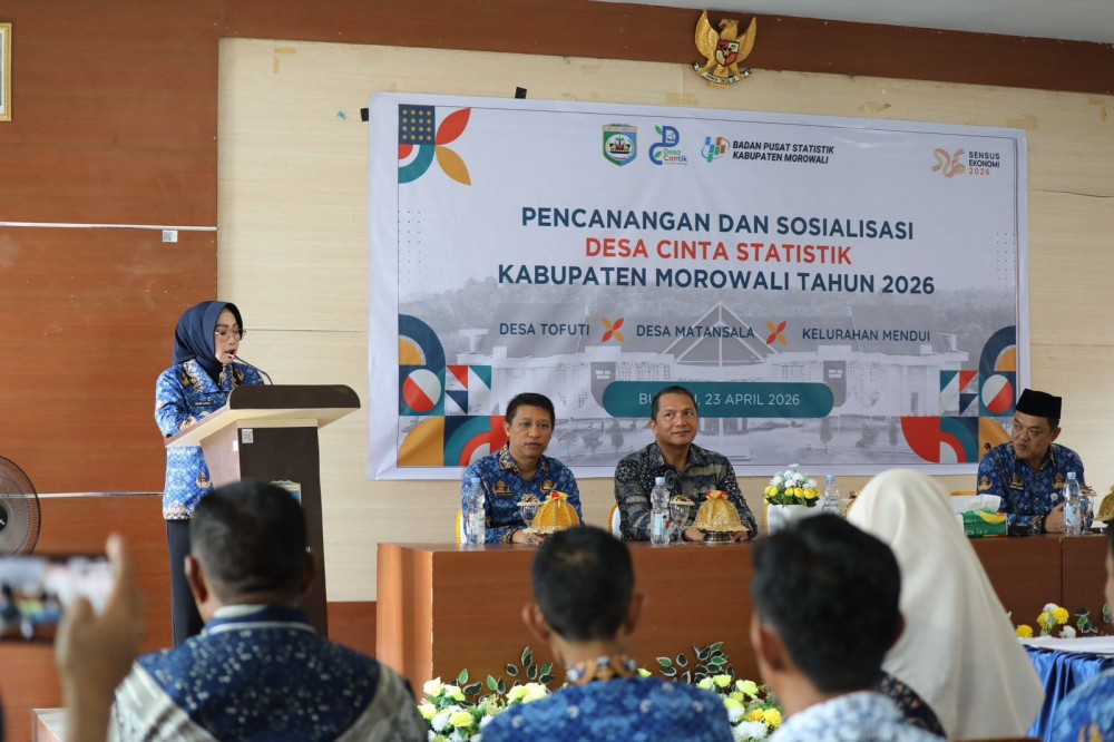 Ikpofficial.kim.id - Wakil Bupati Morowali, Iriane Iliyas, secara resmi mencanangkan Desa Tofuti, Desa Matansala, dan Kelurahan Mendui, Kecamatan Bungku Tengah sebagai Desa Cinta Statistik (Cantik) Tahun 2026. Kegiatan tersebut berlangsung di Aula Kantor Camat Bungku Tengah, Kamis (23/4/2026).